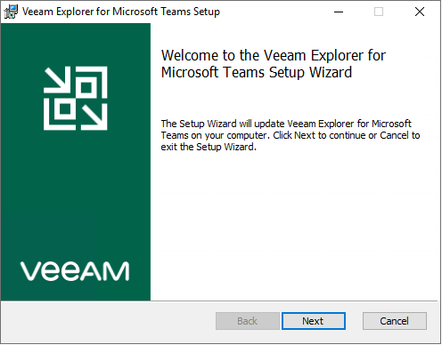 23.Click Update on the Ready to update Veeam Explorer for Microsoft Teams page.