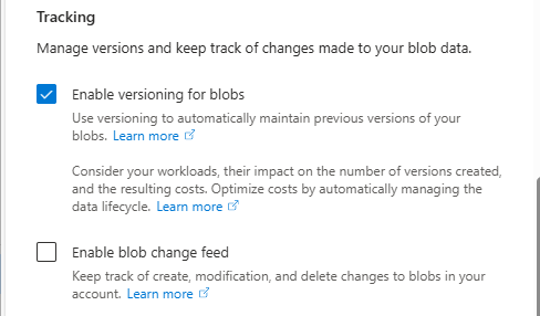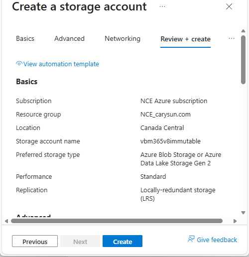 45. Expand Advanced, select Enable version-level immutability support and click Create.