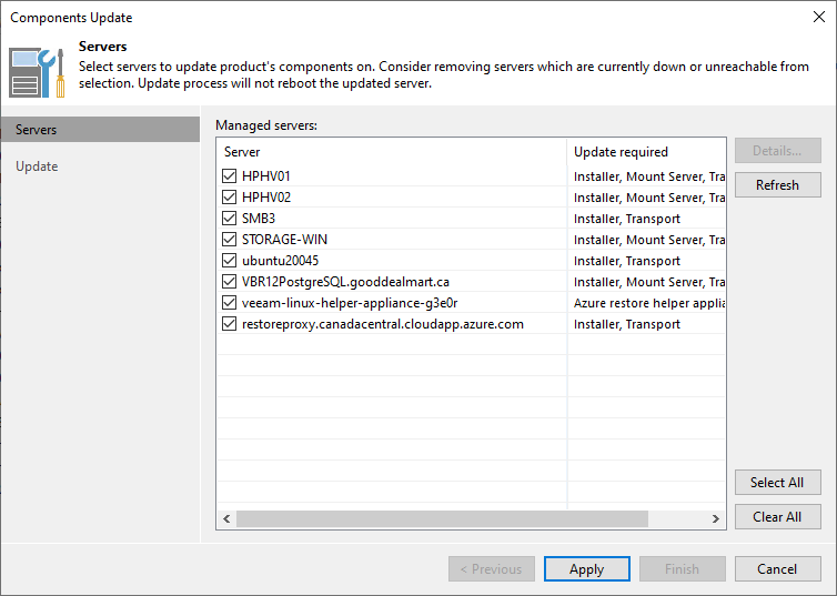 24.On the Components Update page, ensure all components are updated successfully for all servers and click Finish.