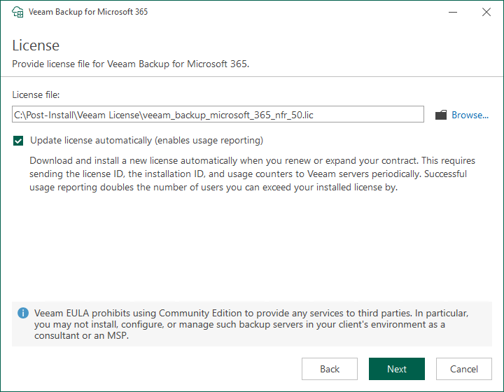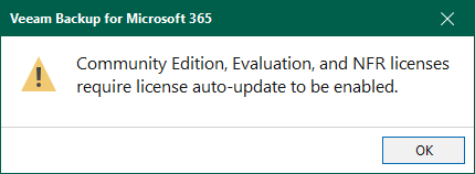 The Community Edition, Evaluation, and NFR, and NFR licenses require license auto-update to be enabled.