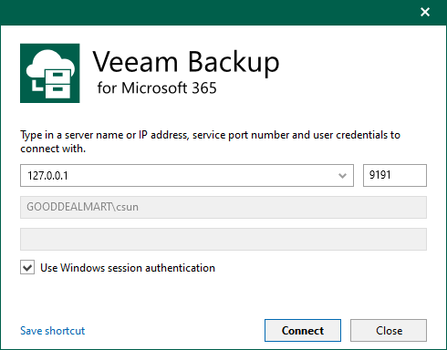 15.Open Veeam Backup for Microsoft 365 console and click Connect.