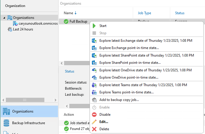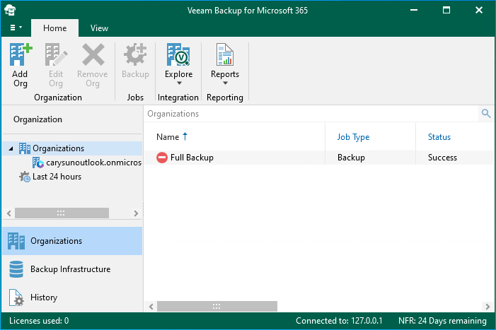 22.Select Organizations on the Veeam Backup for Microsoft 365 console.