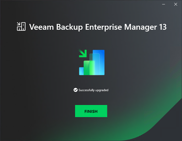 14.Click Finish on the Veeam Backup Enterprise Manager 12.3 Successfully upgraded page.