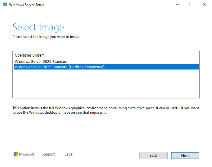 25.Select Windows Server 2025 Standard (Desktop Experience) on the Select Image page and click Next.