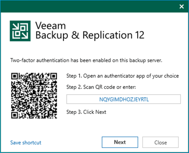 Multi-factor authentication (MFA) is supported by Veeam Backup & Replication for additional user verification....