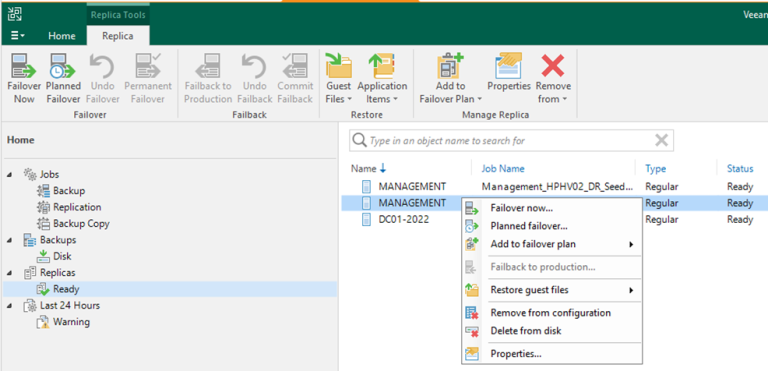 If the original VM fails, you can use Veeam Backup & Replication to restore...