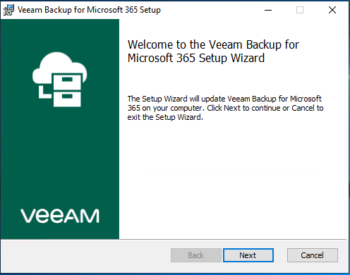 8.Click Update on the Ready to update Veeam Backup for Microsoft 365 page.