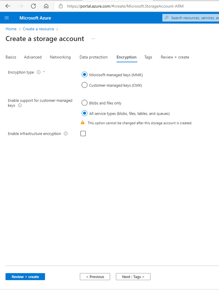 9.On the Encryption page, configure as follow and then click Next: Tags.