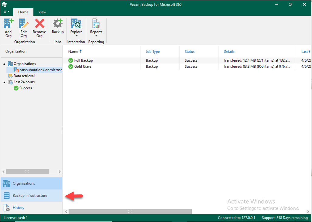 21.On the Veeam Backup for Microsoft Office 365 console page, select Backup Infrastructure.