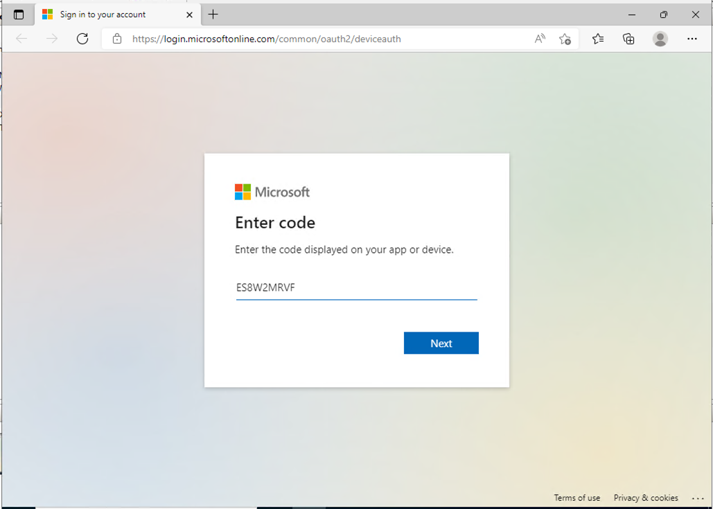 43.On the Log in Microsoft 365 page, click copy code and click the sign in link.