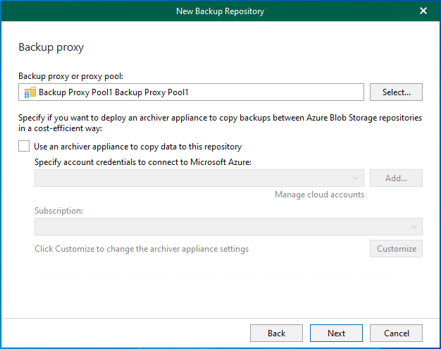 64. On the Backup proxy page, click Select in the Backup proxy or proxy pool field.