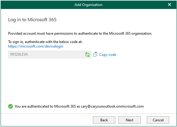 12.On the Log in Microsoft 365 page, click copy code, click the sign in link.