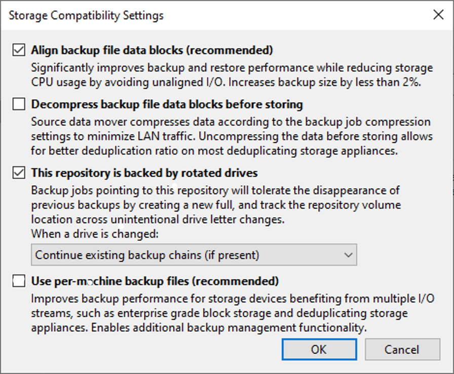 • You cannot store per-machine backup files in backup repositories with rotated drives.