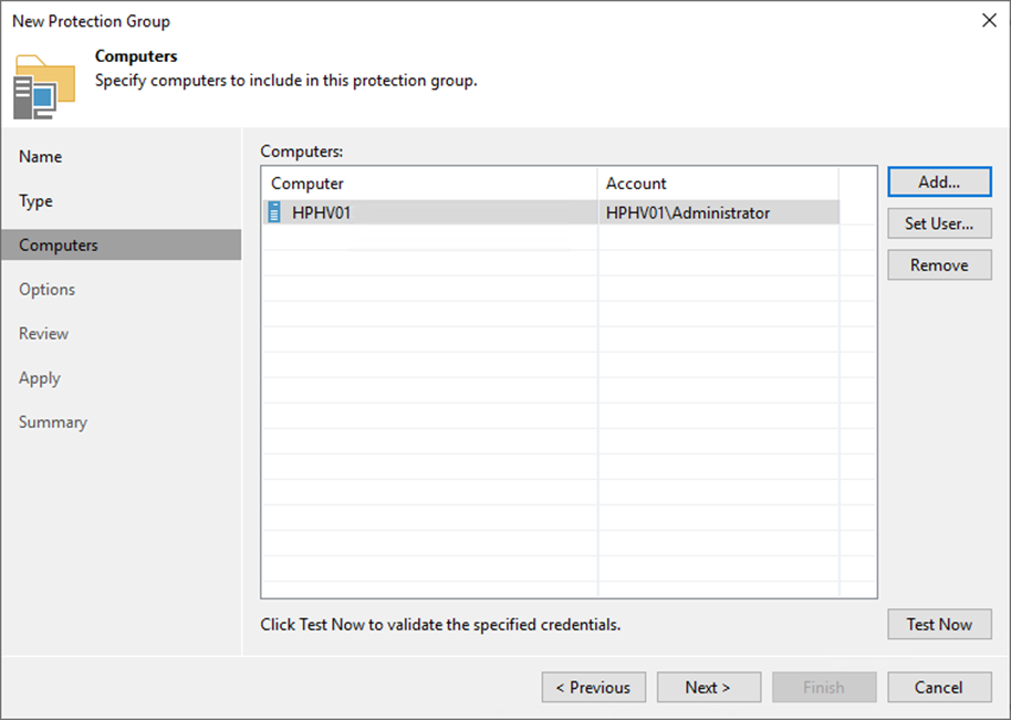 - Computers with pre-installed agents: create a protection group for pre-installed Veeam Agents.