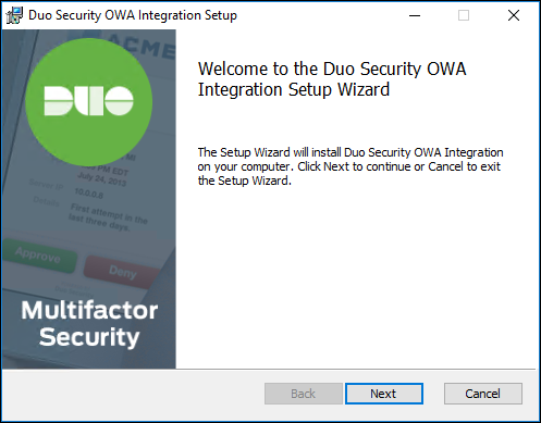 10.Download the Duo OWA Installer Package for Exchange 2013+. View checksums for Duo downloads here.