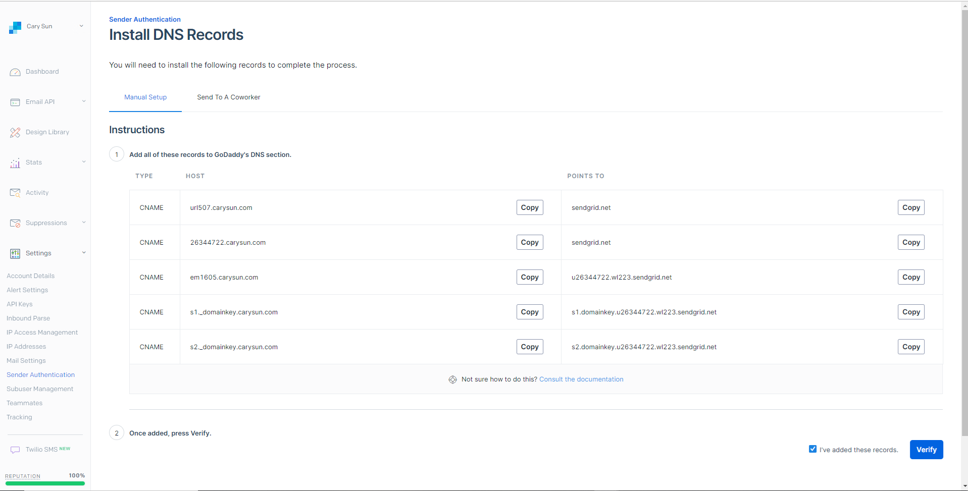 21.On the Install DNS Records page, select I’ve added these records, click Verify.
