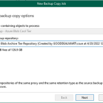11. From the Backup repository drop-down list, select Azure Blob Cool Tier and click Next.
