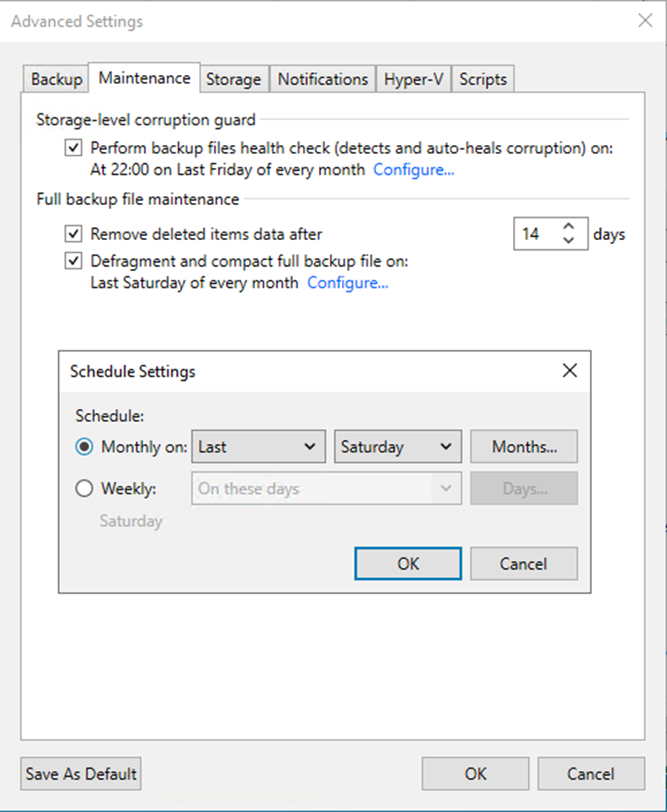 26. Select the Keep weekly full backups for checkbox and specify the number of weeks you want to prevent restore points from being modified and deleted.