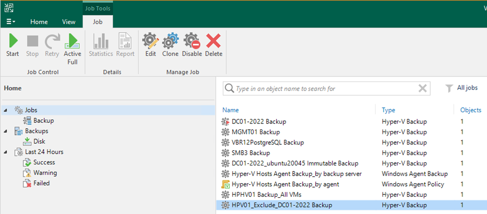 This process creates a backup job to backup the VMS of the Hyper-V host but not all of them.