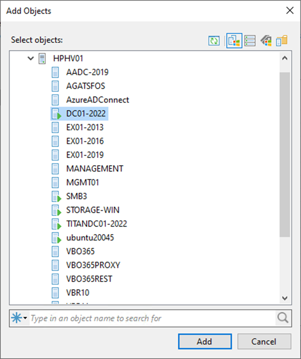 12. On the Add Objects page, Select the objects in the list and click Add.