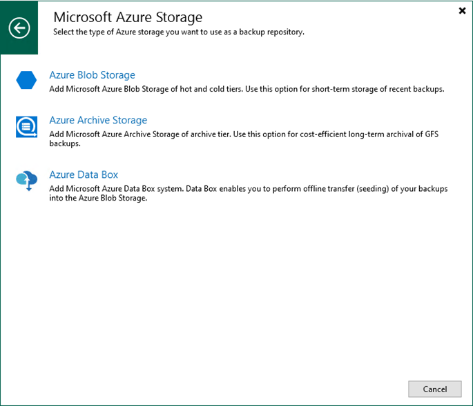 16. On the Microsoft Azure Storage page, select Azure Blob Storage.