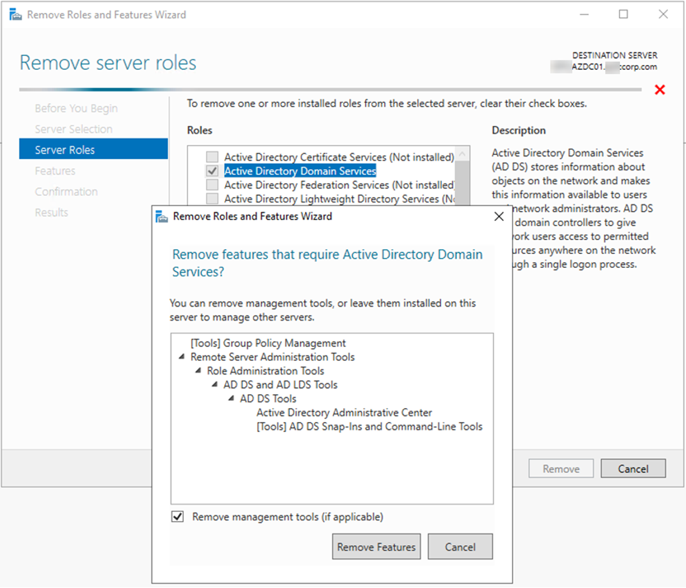 But if it still needs to be another features server, you can follow below steps to move Active Directory Domain Services features from this server.