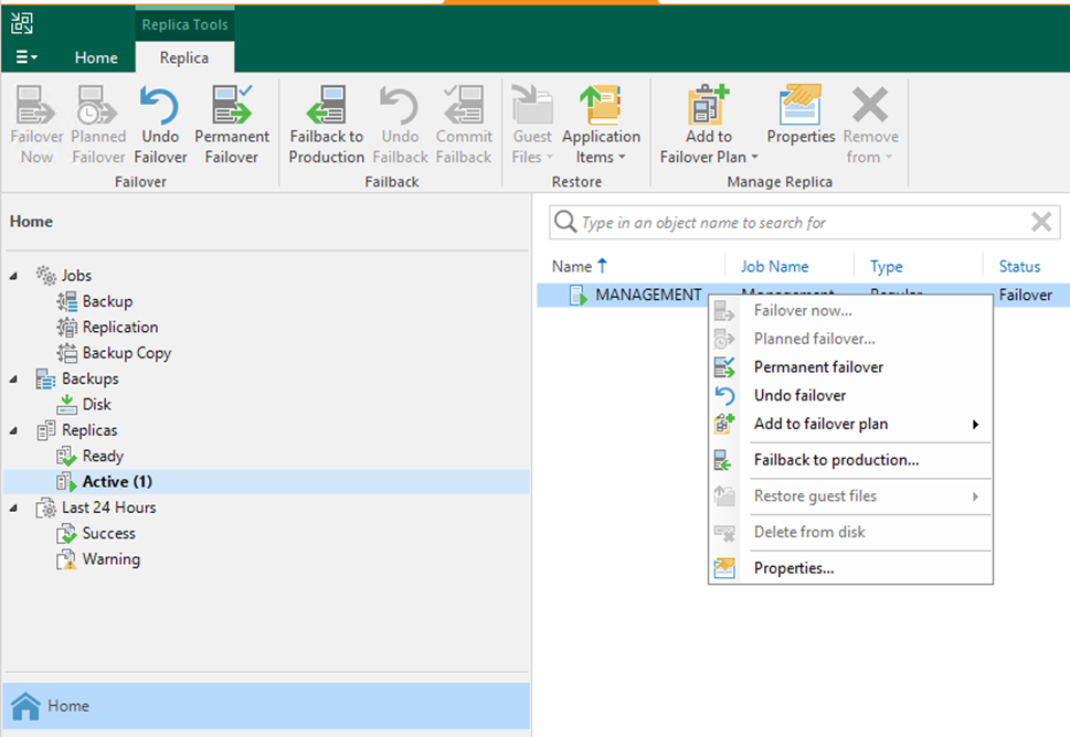 - Failback to a VM from a replica in a different location or to any site with different settings. During the failback process, the VM will be recovered from the replica.