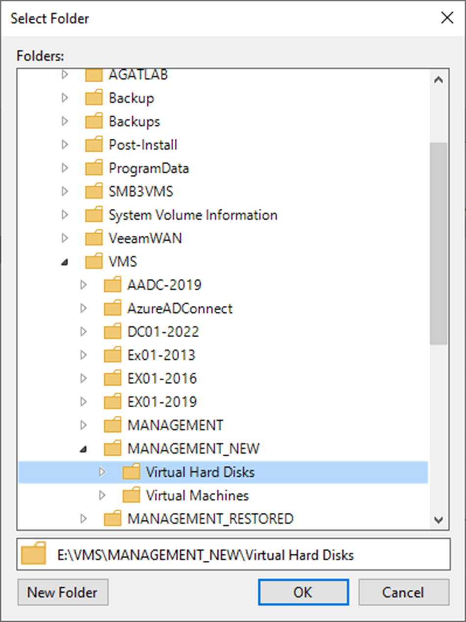 17. On the Select Folder page, expand and select the failback destination folder for vhdx files.