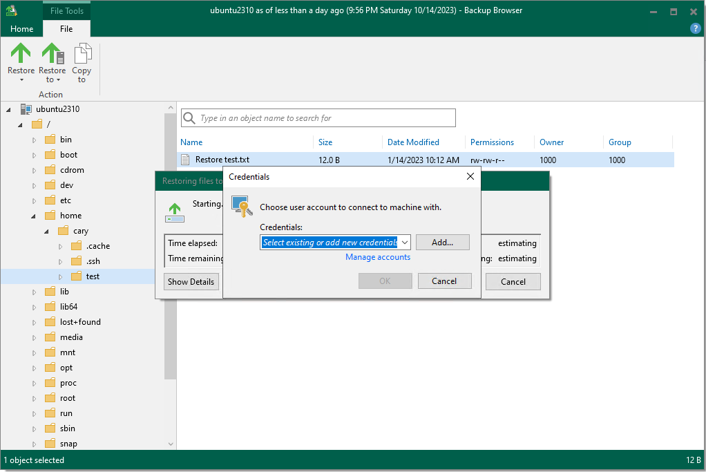22.Run the Restore process from the Veeam Backup and Manager Server again, and the error disappears.