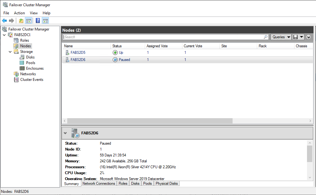 4. Ensure that the is N-RAM Free Space. E.g. 256 GB of RAM must be lower than the total 240 GB of RAM in use of the cluster for failover failback.