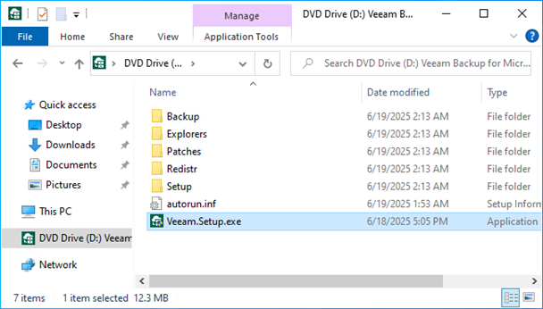 3. Mount VBO365 v8 (VeeamBackupMicrosoft365_8.1.2.180_20250619) ISO image file.