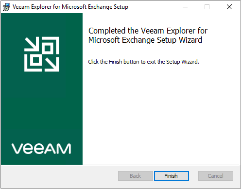 16. On the Completed the Veeam Explorer for Microsoft Exchange Setup Wizard page, click Finish.