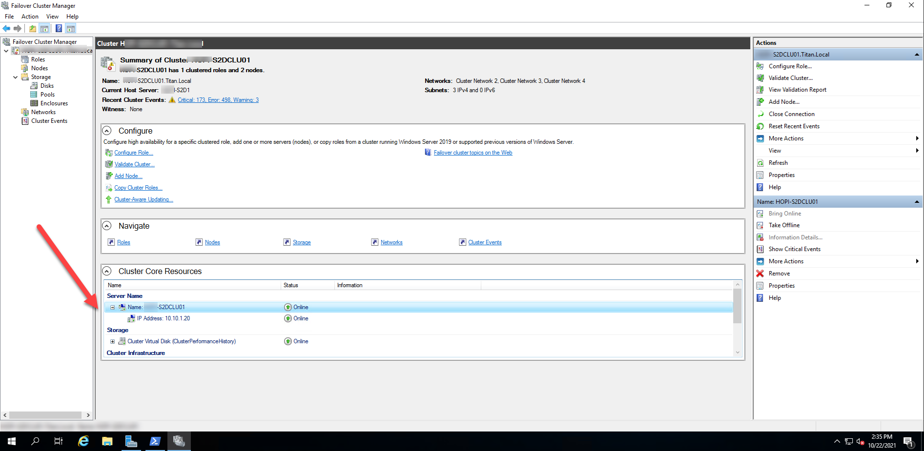 19.Bring the Cluster Name and all other cluster Network Name resources to an Online state.