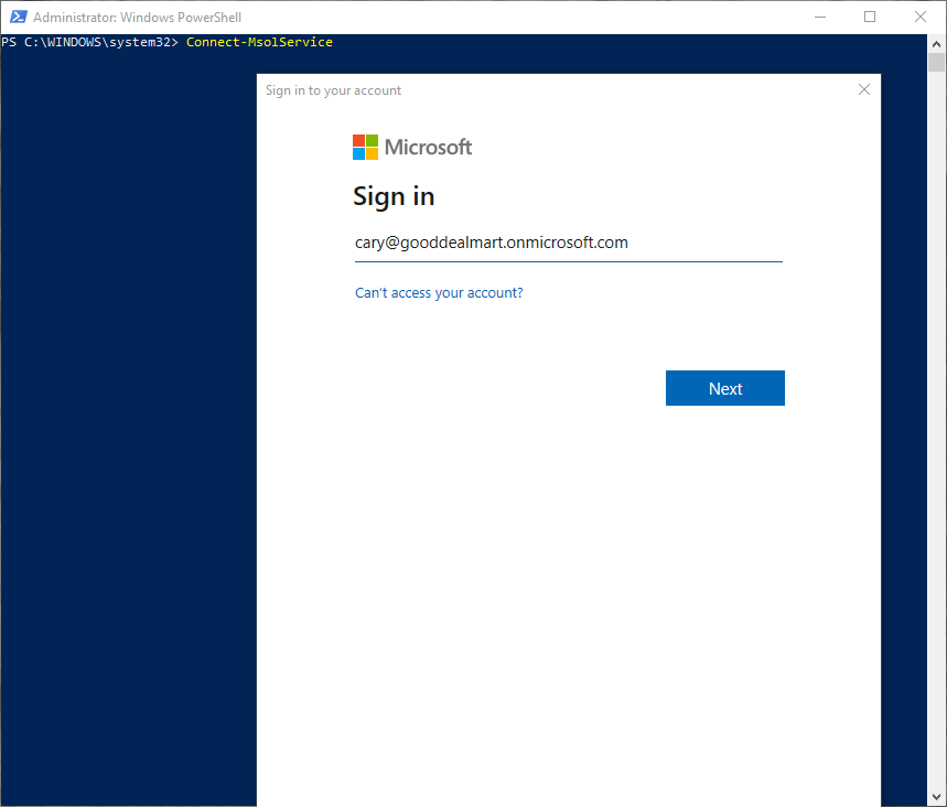 Connect-MsolService