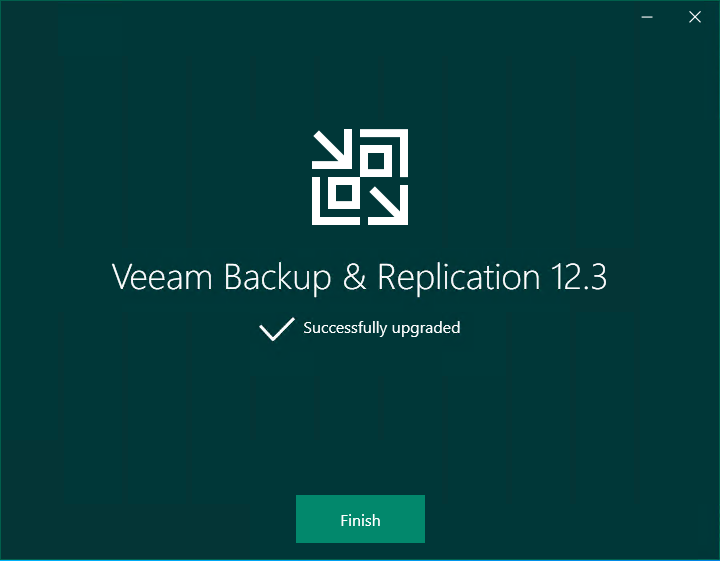 20.Click Finish on the Veeam Backup & Replication 12.3 Successfully upgraded page.