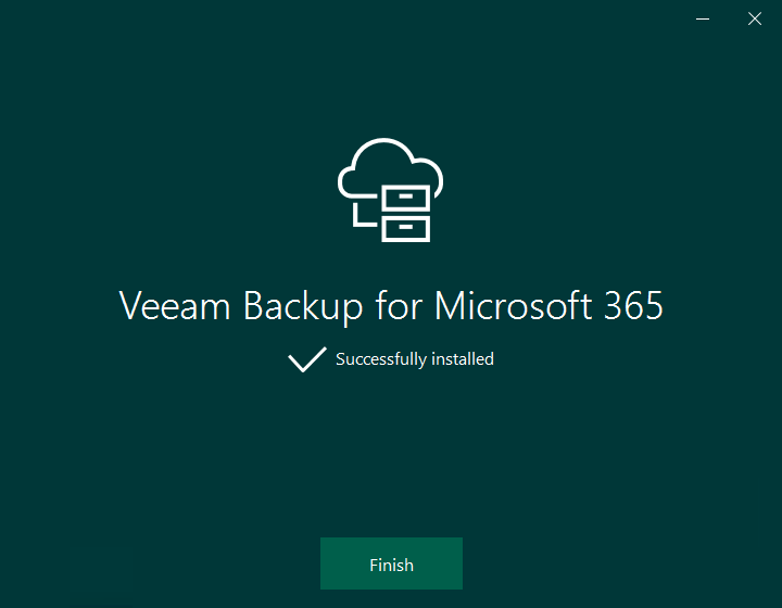 35.Click Finish on the Veeam Backup for Microsoft 365 Successfully installed page.