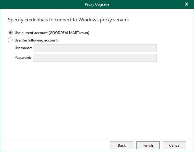 19.Click Finish on the Specify credentials to connect to proxy servers page.
