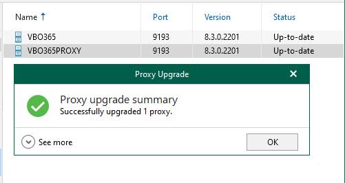 20.Ensure the Proxy Servers were successfully upgraded, click OK.