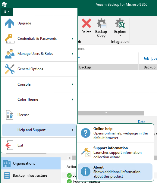 24.Verify the Veeam Backup for Microsoft 365 version from Veeam Backup for Microsoft 365 console (Help |Abut).