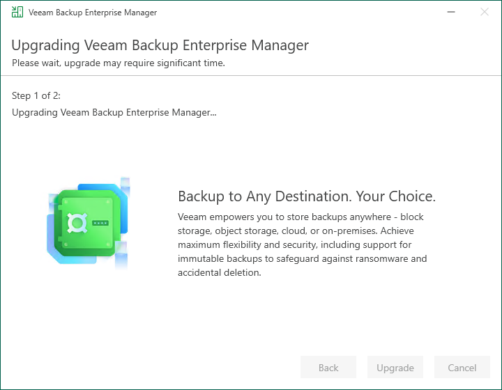 13There are two steps to upgrade Veeam Backup Enterprise Manager.