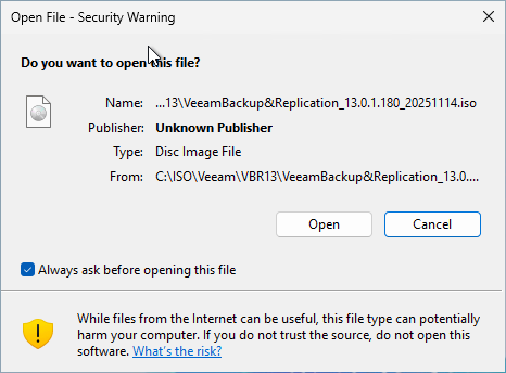 3.Mount the VeeamBackup&Replication_13.0.1.180_20251114.iso file.