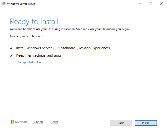 28.Click Install on the Ready to install page.