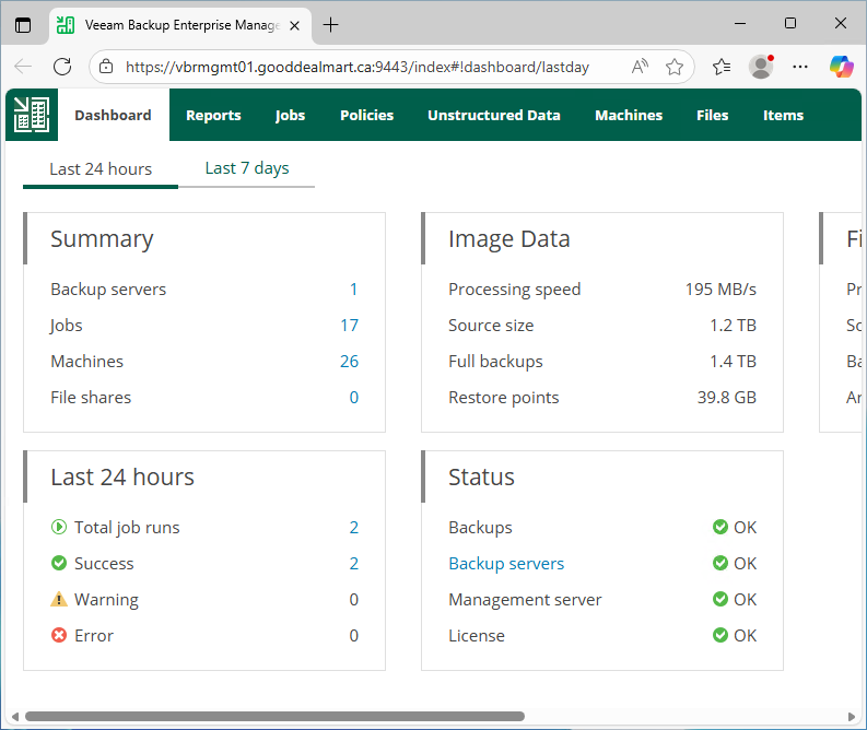 1.Login to the Veeam Backup Enterprise Manager machine.